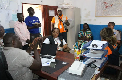 À leur arrivée, la délégation a été accueillie par Dr Philippe MDH, Médecin Directeur de l’Hôpital Général de Référence (HGR) de Nizi et Médecin-Chef de Zone (MCZ) ad intérim. La présentation de la délégation auprès du MCZ a été faite par l’équipe de RADPI.